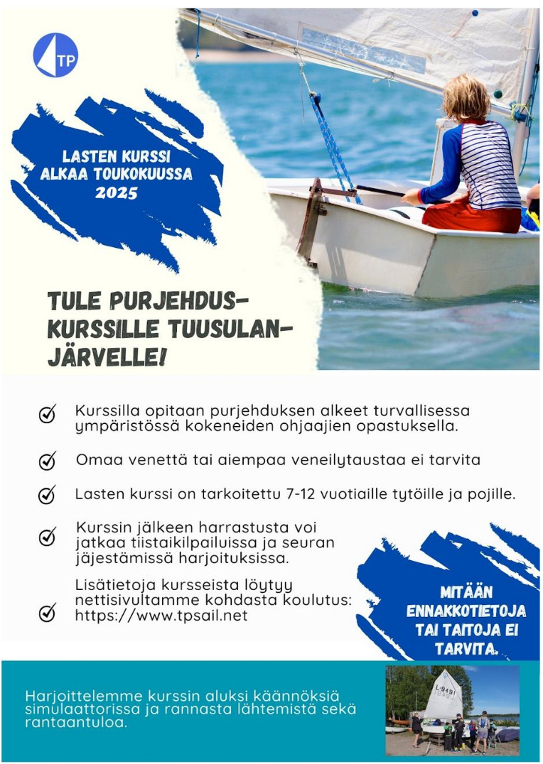 Tuusulanjärvellä järjestetään Optimistijollien karsintasarjan kaksipäiväinen osakilpailu lauantaina 10.5. - sunnuntaina 11.5.2025.